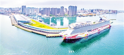 一艘郵輪停靠在山東港口集團青島國際郵輪母港。(資料照片)