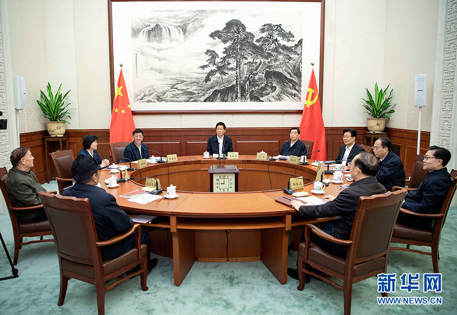 11月1日,中共全國人大常委會黨組在北京舉行會議,傳達(dá)學(xué)習(xí)習(xí)近平總書記在黨的十九屆四中全會上的重要講話和全會精神,統(tǒng)一思想認(rèn)識,研究貫徹落實工作。中共中央政治局常委、全國人大常委會委員長、黨組書記栗戰(zhàn)書主持會議并講話。 新華社記者 李濤 攝