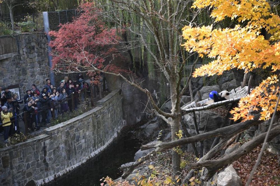 11月11日,在美國(guó)國(guó)家動(dòng)物園,“貝貝”和游客見(jiàn)面。新華社記者劉杰攝