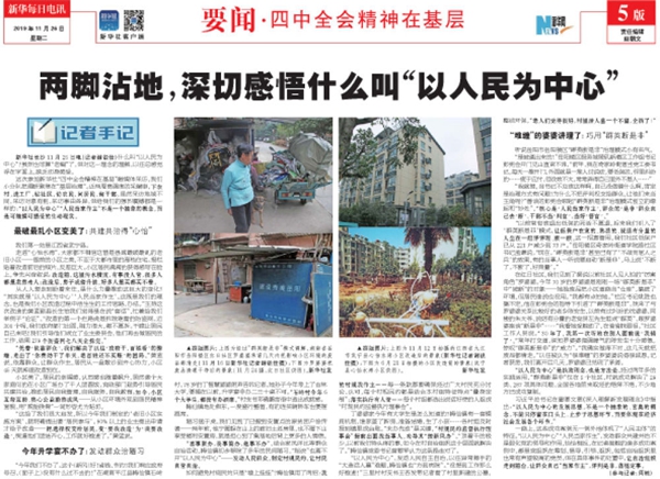 ▲2019年11月26日《新華每日電訊》五版刊載題為《兩腳沾地,深切感悟什么叫“以人民為中心”》的報(bào)道。