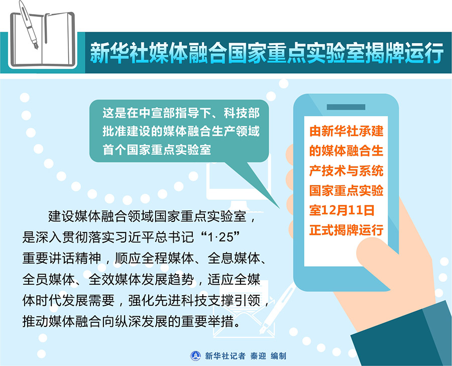 新華社北京12月11日電? 由新華社承建的媒體融合生產技術與系統國家重點實驗室12月11日正式揭牌運行。這是在中宣部指導下、科技部批準建設的媒體融合生產領域首個國家重點實驗室。建設媒體融合領域國家重點實驗室,是深入貫徹落實習近平總書記“1·25”重要講話精神,順應全程媒體、全息媒體、全員媒體、全效媒體發展趨勢,適應全媒體時代發展需要,強化先進科技支撐引領,推動媒體融合向縱深發展的重要舉措。