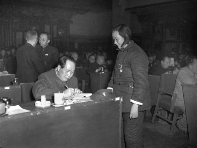 毛澤東為她簽名留念。