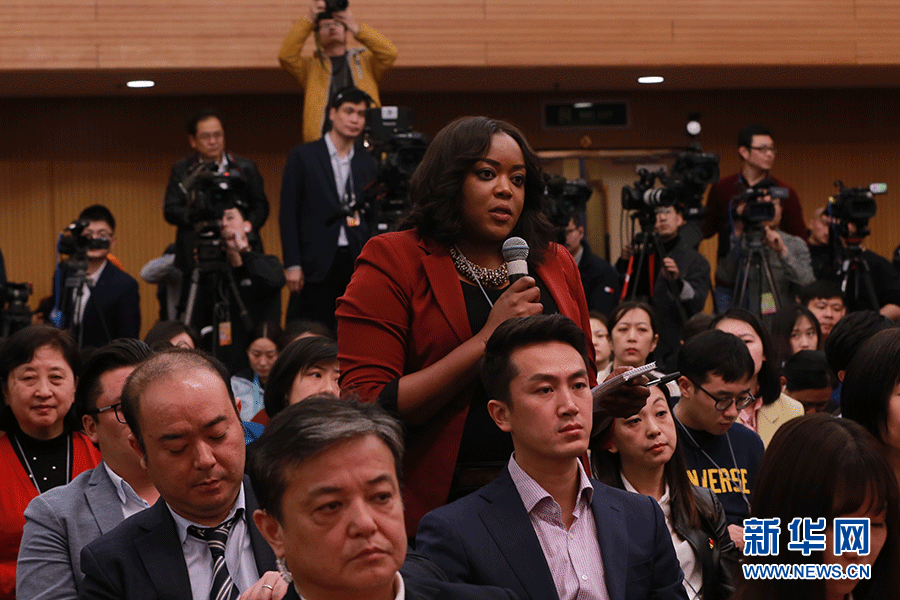 全國政協十三屆二次會議3月6日下午在梅地亞兩會新聞中心舉行記者會,邀請5位全國政協委員就“優化營商環境、促進民營經濟高質量發展”回答記者提問。圖為中國國際電視臺記者提問。新華網/中國政府網?馬娟 攝