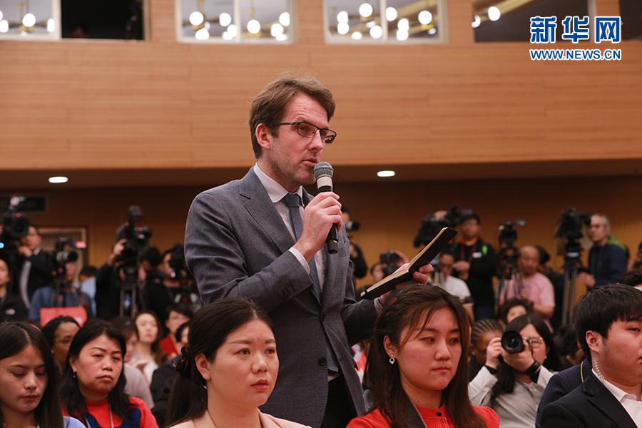 十三屆全國人大二次會議新聞中心于3月6日(星期三)上午10時在梅地亞中心新聞發布廳舉行記者會,邀請國家發展改革委主任何立峰,副主任寧吉喆、連維良就“大力推動經濟高質量發展”相關問題回答中外記者的提問。圖為彭博新聞社記者提問。新華網/中國政府網 馬娟 攝