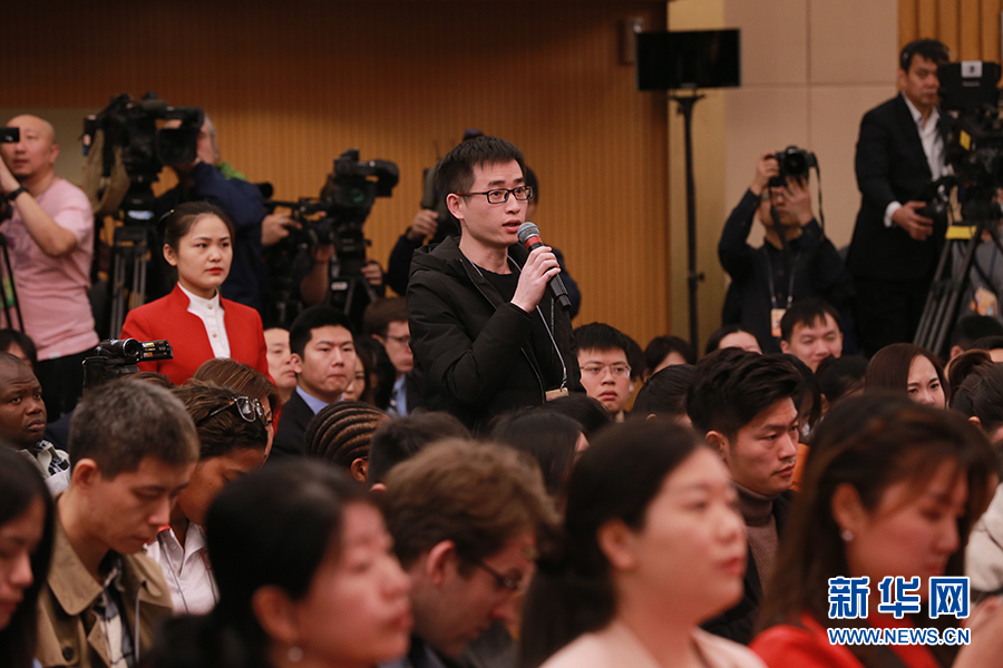 十三屆全國(guó)人大二次會(huì)議新聞中心于3月6日(星期三)上午10時(shí)在梅地亞中心新聞發(fā)布廳舉行記者會(huì),邀請(qǐng)國(guó)家發(fā)展改革委主任何立峰,副主任寧吉喆、連維良就“大力推動(dòng)經(jīng)濟(jì)高質(zhì)量發(fā)展”相關(guān)問(wèn)題回答中外記者的提問(wèn)。圖為人民日?qǐng)?bào)海外版記者提問(wèn)。新華網(wǎng)/中國(guó)政府網(wǎng) 馬娟 攝