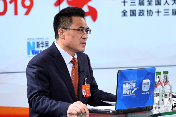 3月6日,全國人大代表、四川省生態(tài)環(huán)境廳黨組書記、廳長(zhǎng)于會(huì)文作客新華網(wǎng)2019全國兩會(huì)特別報(bào)道。新華網(wǎng) 李相博 攝