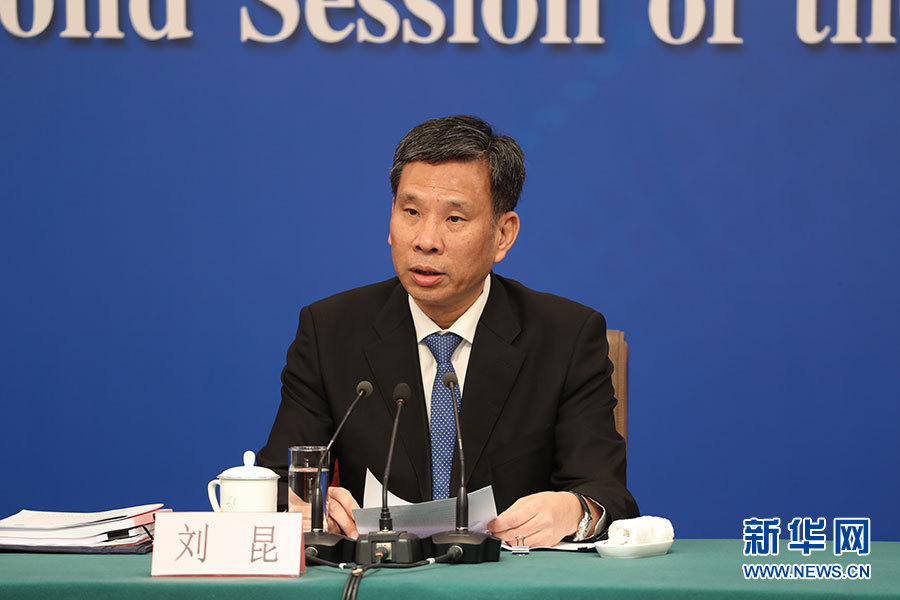 十三屆全國人大二次會議新聞中心3月7日9時在梅地亞中心新聞發(fā)布廳舉行記者會,邀請財政部部長劉昆,副部長程麗華、劉偉就“財稅改革和財政工作”相關問題回答中外記者提問。圖為劉昆回答記者提問。新華網(wǎng)/中國政府網(wǎng) 陳杰 攝