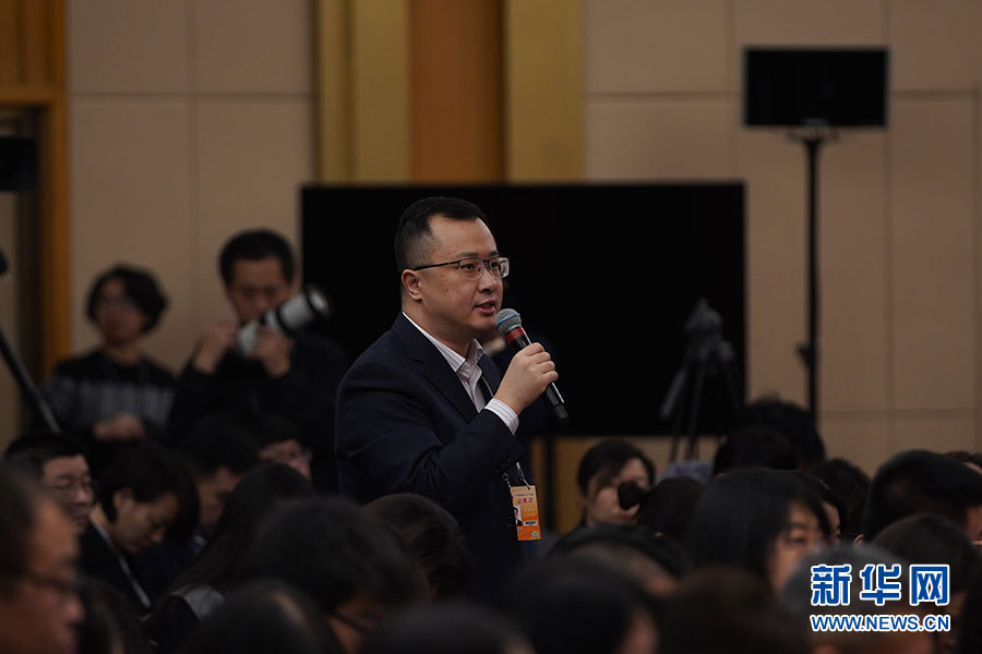 十三屆全國人大二次會(huì)議新聞中心3月7日9時(shí)在梅地亞中心新聞發(fā)布廳舉行記者會(huì),邀請(qǐng)財(cái)政部部長劉昆,副部長程麗華、劉偉就“財(cái)稅改革和財(cái)政工作”相關(guān)問題回答中外記者提問。圖為人民日?qǐng)?bào)記者提問。新華網(wǎng)/中國政府網(wǎng) 劉廈 攝