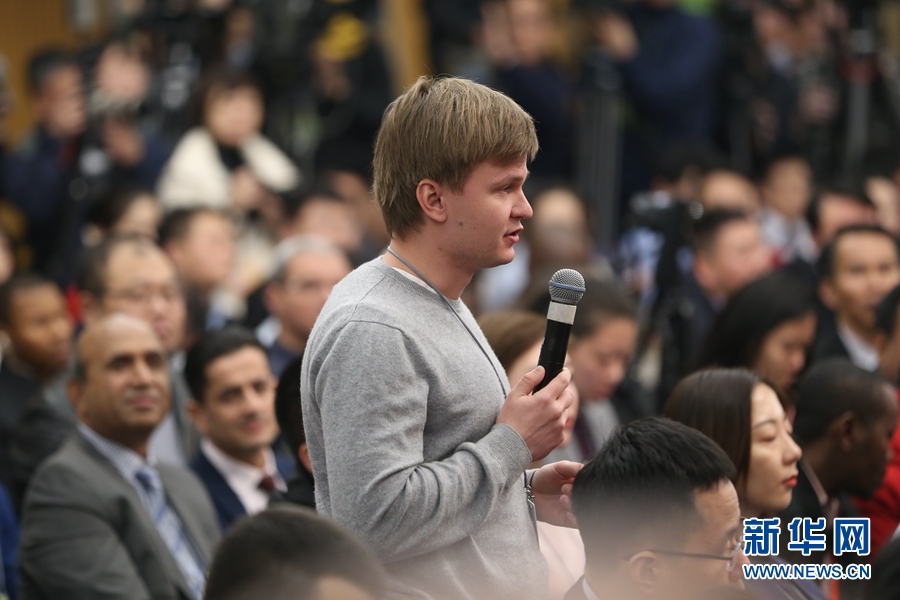 十三屆全國人大二次會(huì)議新聞中心3月8日10時(shí)在梅地亞中心新聞發(fā)布廳舉行記者會(huì),邀請(qǐng)國務(wù)委員兼外交部長(zhǎng)王毅就“中國外交政策和對(duì)外關(guān)系”相關(guān)問題回答中外記者提問。圖為俄羅斯塔斯社記者提問。新華網(wǎng)/中國政府網(wǎng) 劉廈 攝