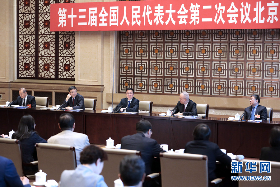3月8日,中共中央政治局常委、國務院副總理韓正參加十三屆全國人大二次會議北京代表團的審議。新華社記者 劉彬 攝