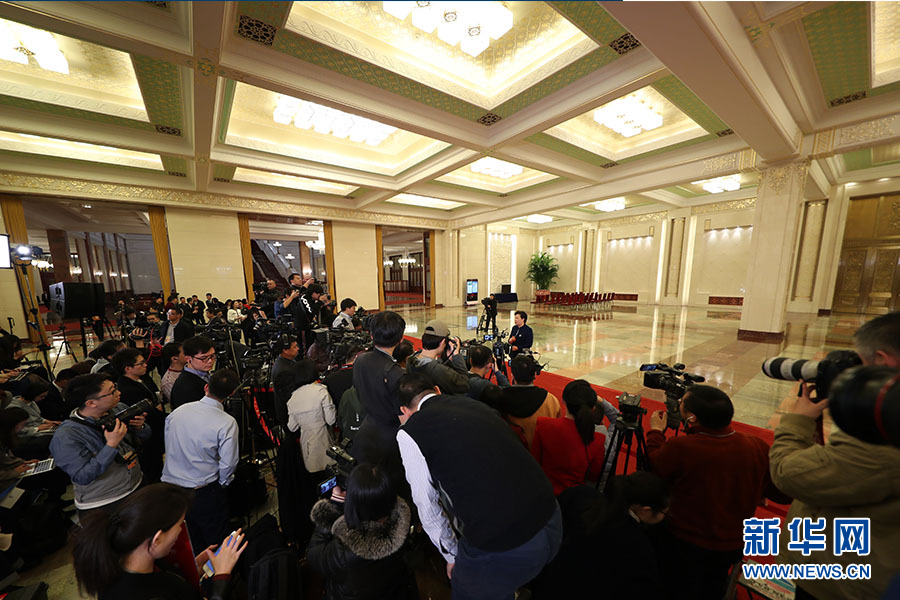 記者在“部長通道”采訪-新華網