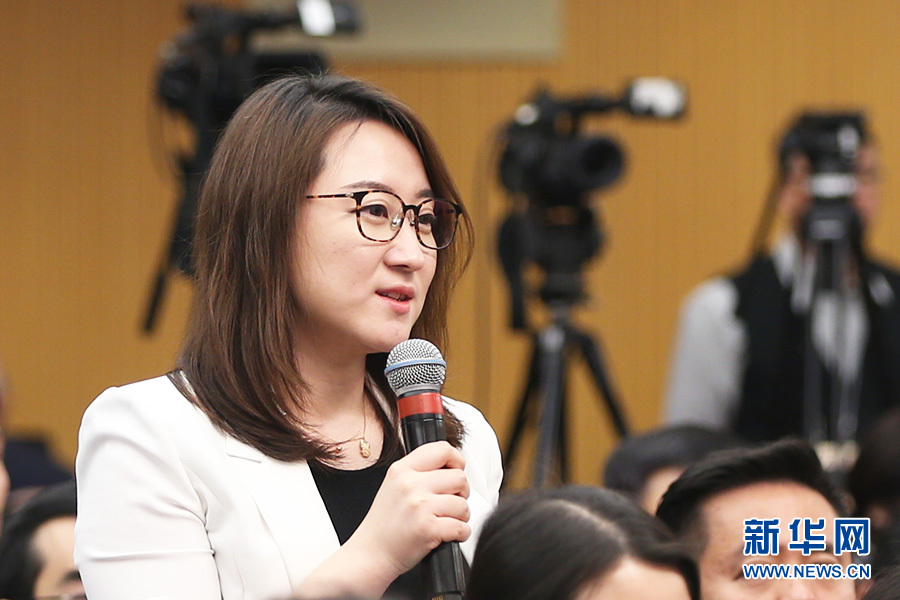 十三屆全國人大二次會議新聞中心3月9日(星期六)15時在梅地亞中心新聞發布廳舉行記者會,邀請國務院國資委主任肖亞慶,副主任翁杰明,秘書長、新聞發言人彭華崗就“國有企業改革發展”相關問題回答中外記者提問。圖為中央廣播電視總臺央視記者提問。新華網/中國政府網 劉廈 攝