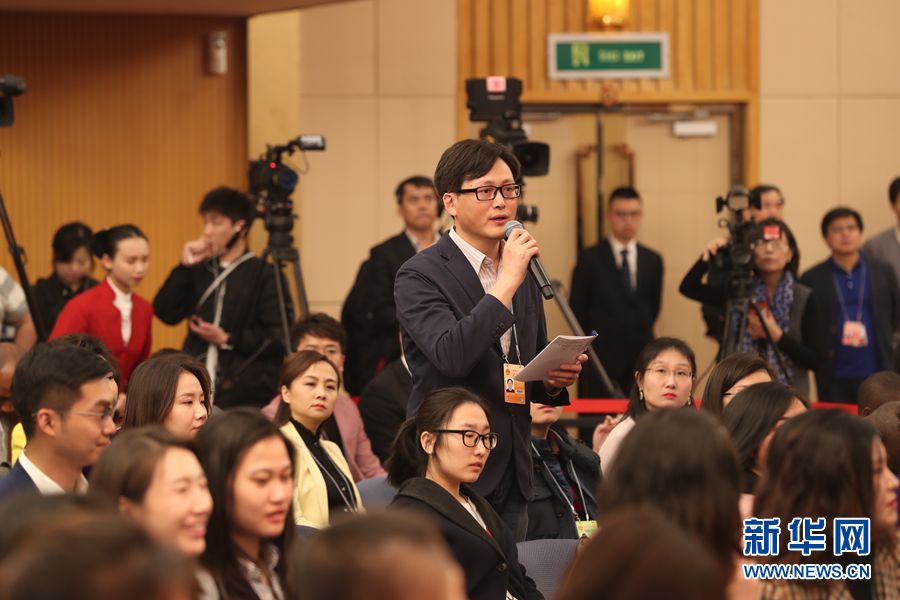 十三屆全國(guó)人大二次會(huì)議新聞中心3月9日在梅地亞中心新聞發(fā)布廳舉行記者會(huì),邀請(qǐng)全國(guó)人大農(nóng)業(yè)與農(nóng)村委員會(huì)主任委員陳錫文、全國(guó)人大財(cái)政經(jīng)濟(jì)委員會(huì)副主任委員烏日?qǐng)D、全國(guó)人大常委會(huì)法制工作委員會(huì)副主任劉俊臣、全國(guó)人大常委會(huì)法制工作委員會(huì)副主任許安標(biāo)、全國(guó)人大環(huán)境與資源保護(hù)委員會(huì)委員程立峰就“人大立法工作”相關(guān)問題回答記者提問。圖為新京報(bào)記者提問。新華網(wǎng)/中國(guó)政府網(wǎng) 陳杰 攝