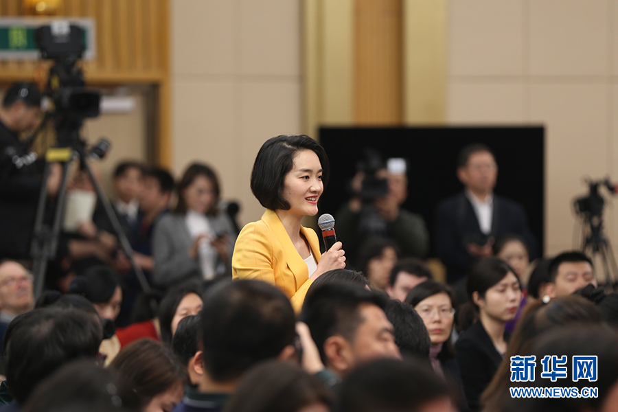 十三屆全國人大二次會議新聞中心于3月10日(星期日)上午10時30分在梅地亞中心新聞發布廳舉行記者會,邀請中國人民銀行行長易綱,副行長陳雨露,副行長、國家外匯管理局局長潘功勝,副行長范一飛就“金融改革與發展”相關問題回答記者提問。圖為中央廣播電視總臺央視記者提問。新華網/中國政府網 劉廈 攝