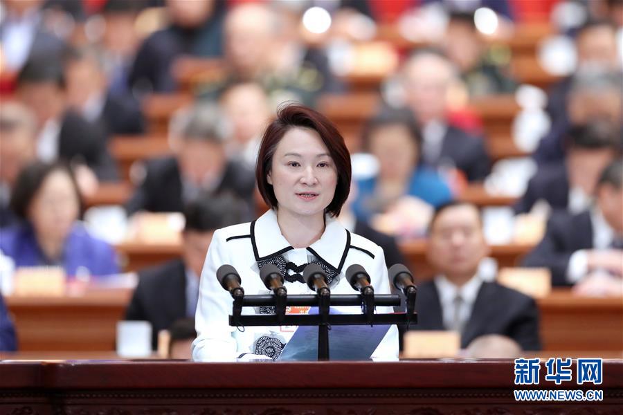 3月11日,全國政協十三屆二次會議在北京人民大會堂舉行第四次全體會議。這是李慧瓊委員作大會發言。 新華社記者 丁海濤 攝