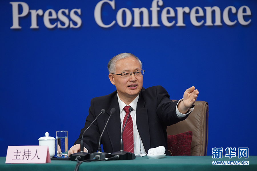 十三屆全國(guó)人大二次會(huì)議新聞中心于3月11日(星期一)15時(shí)在梅地亞中心新聞發(fā)布廳舉行記者會(huì),邀請(qǐng)生態(tài)環(huán)境部部長(zhǎng)李干杰就“打好污染防治攻堅(jiān)戰(zhàn)”相關(guān)問題回答中外記者提問。圖為記者會(huì)主持人。新華網(wǎng)/中國(guó)政府網(wǎng) 劉廈 攝
