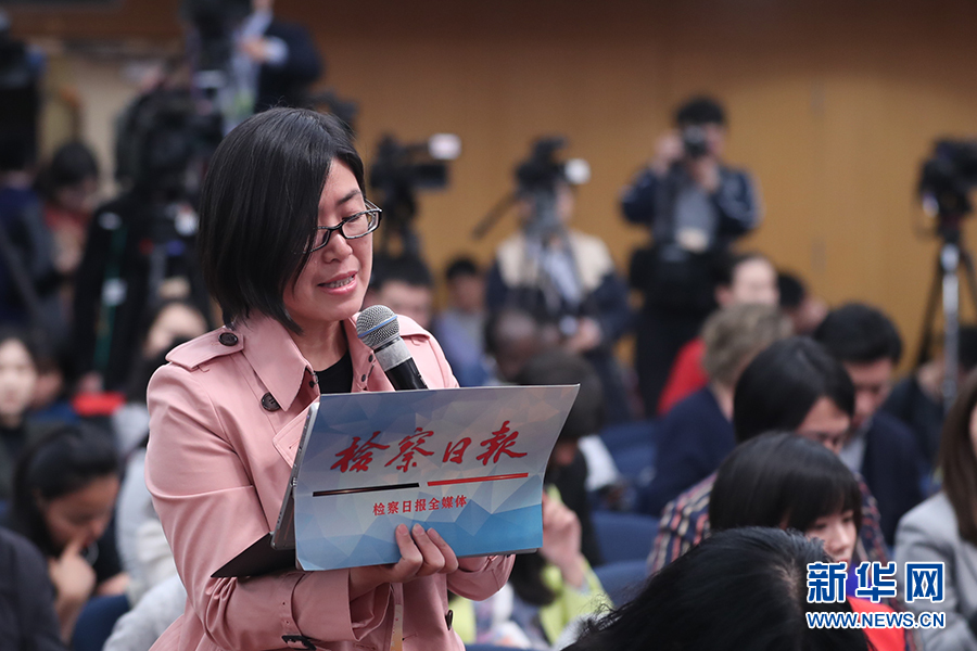 十三屆全國人大二次會議新聞中心于3月11日(星期一)15時(shí)在梅地亞中心新聞發(fā)布廳舉行記者會,邀請生態(tài)環(huán)境部部長李干杰就“打好污染防治攻堅(jiān)戰(zhàn)”相關(guān)問題回答中外記者提問。圖為檢察日報(bào)全媒體中心記者提問。新華網(wǎng)/中國政府網(wǎng) 劉廈 攝