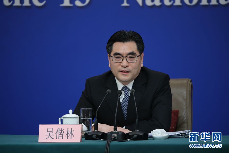 十三屆全國人大二次會議新聞中心于3月12日15時在梅地亞中心新聞發(fā)布廳舉行記者會,邀請最高人民法院審判委員會副部級專職委員劉貴祥,福建省高級人民法院院長吳偕林,江西省高級人民法院院長葛曉燕就“攻堅‘基本解決執(zhí)行難’”相關(guān)問題回答中外記者提問。圖為吳偕林回答記者提問。新華網(wǎng)/中國政府網(wǎng) 劉廈攝