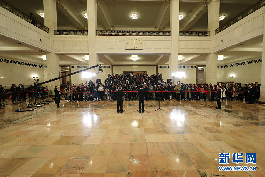 全國政協十三屆二次會議3月13日上午9:30在人民大會堂舉行閉幕會。圖為全國政協委員在“委員通道”接受采訪。新華網/中國政府網 陳杰 攝