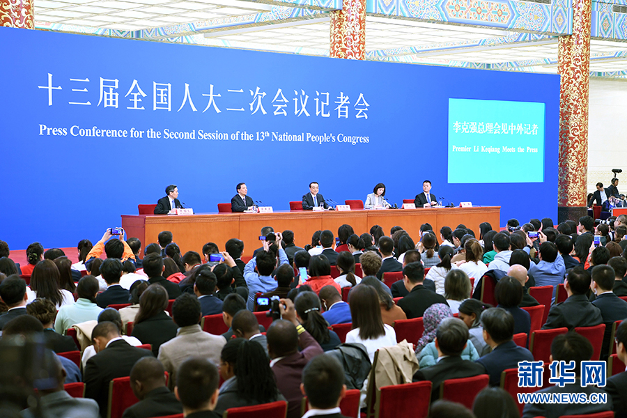 3月15日,國務院總理李克強在北京人民大會堂會見采訪十三屆全國人大二次會議的中外記者并答記者問。 新華社記者 張領 攝