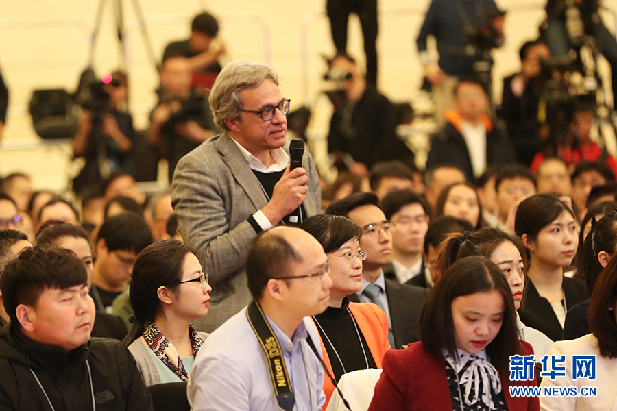 3月15日上午十三屆全國人大二次會議閉幕后,國務院總理李克強在人民大會堂三樓金色大廳會見采訪十三屆全國人大二次會議的中外記者并回答記者提出的問題。圖為西班牙記者提問。新華網/中國政府網?陳杰 攝