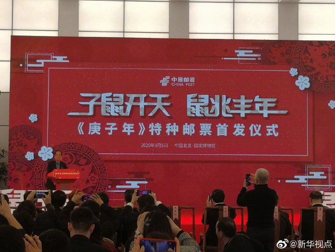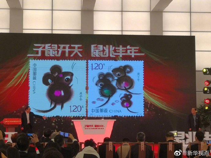 《庚子年》特種郵票首發(fā)儀式5日在中國國家博物館舉行。鼠年生肖郵票第一圖名為“子鼠開天”,第二圖為“鼠兆豐年”。郵票設(shè)計者為著名藝術(shù)家韓美林先生。畫面運(yùn)用裝飾小寫意的畫法,結(jié)合傳統(tǒng)國畫的渲染技藝,展現(xiàn)了生肖鼠的可愛萌動,預(yù)示著偉大祖國的繁榮富強(qiáng)。5日起,集郵愛好者在全國指定郵政網(wǎng)點(diǎn)、集郵網(wǎng)廳、中國郵政手機(jī)客戶端和中國郵政微郵局集郵微信商城均可購買《庚子年》特種郵票。(記者趙文君)?