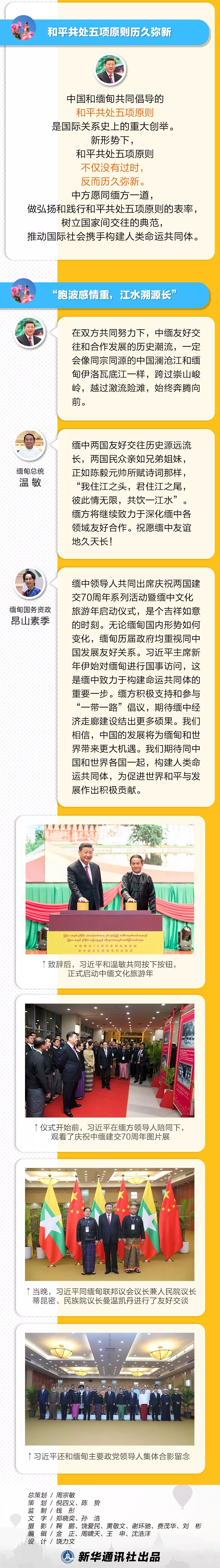 1月17日,國家主席習近平抵達內比都,開始對緬甸進行為期兩天的國事訪問。第一天行程滿滿,其中一項重要活動就是,出席中緬建交70周年慶祝活動暨中緬文化旅游年啟動儀式。習主席和緬甸總統溫敏、國務資政昂山素季在儀式上分別致辭,其中信息量滿滿。