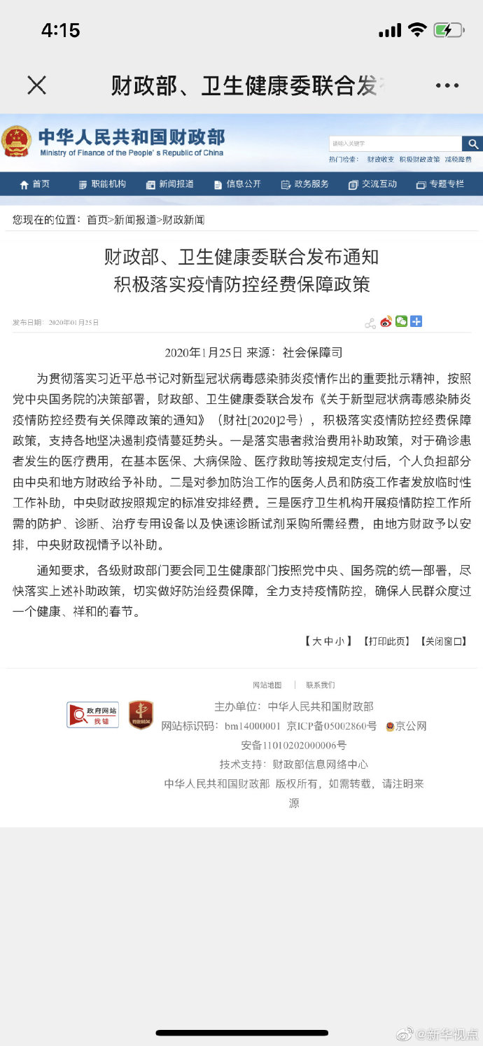 記者25日從財(cái)政部獲悉,財(cái)政部、衛(wèi)生健康委聯(lián)合發(fā)布通知,對于確診患者發(fā)生的醫(yī)療費(fèi)用,在基本醫(yī)保、大病保險(xiǎn)、醫(yī)療救助等按規(guī)定支付后,個人負(fù)擔(dān)部分由中央和地方財(cái)政給予補(bǔ)助。對參加防治工作的醫(yī)務(wù)人員和防疫工作者發(fā)放臨時性工作補(bǔ)助,中央財(cái)政按照規(guī)定的標(biāo)準(zhǔn)安排經(jīng)費(fèi)。醫(yī)療衛(wèi)生機(jī)構(gòu)開展疫情防控工作所需的防護(hù)、診斷、治療專用設(shè)備以及快速診斷試劑采購所需經(jīng)費(fèi),由地方財(cái)政予以安排,中央財(cái)政視情予以補(bǔ)助。(記者郁瓊源)