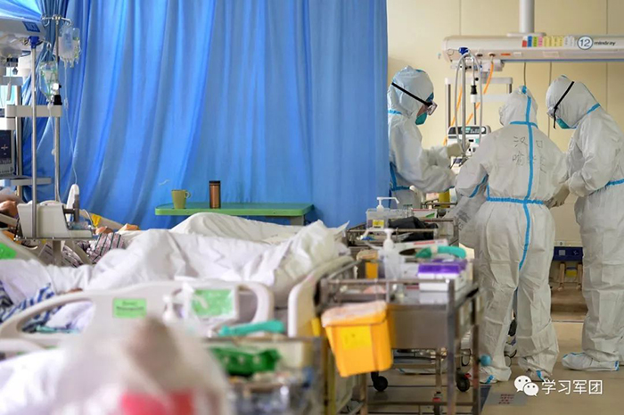 1月27日上午,海軍軍醫(yī)大學(xué)醫(yī)療隊(duì)醫(yī)護(hù)人員在漢口醫(yī)院重癥監(jiān)護(hù)室對新型冠狀病毒感染的肺炎患者進(jìn)行救治。醫(yī)護(hù)人員加強(qiáng)巡視,觀察輸液滴數(shù)。解放軍報(bào)記者范顯海攝
