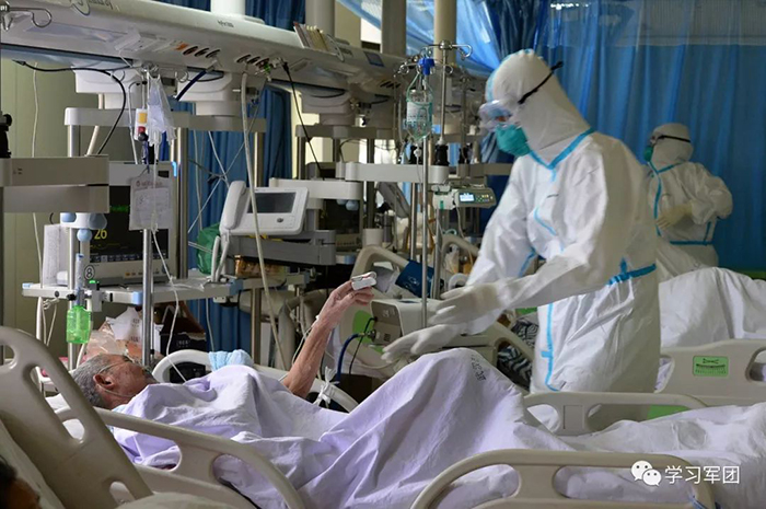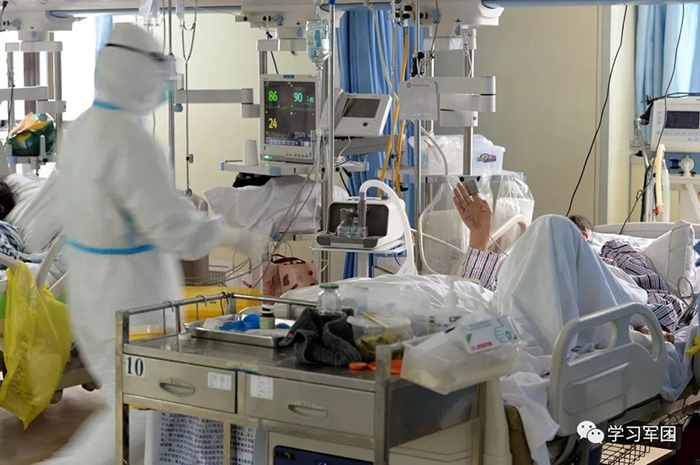 1月27日上午,海軍軍醫(yī)大學(xué)醫(yī)療隊(duì)醫(yī)護(hù)人員在漢口醫(yī)院重癥監(jiān)護(hù)室對新型冠狀病毒感染的肺炎患者進(jìn)行救治。在患者眼中,醫(yī)護(hù)人員就是他們的“救星”。解放軍報(bào)記者范顯海攝