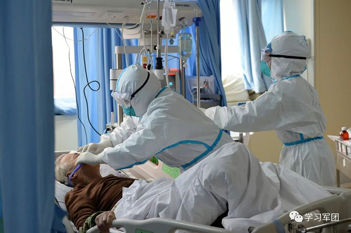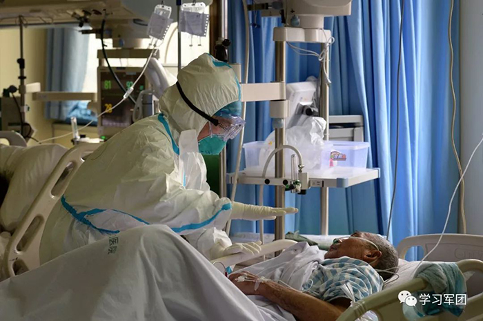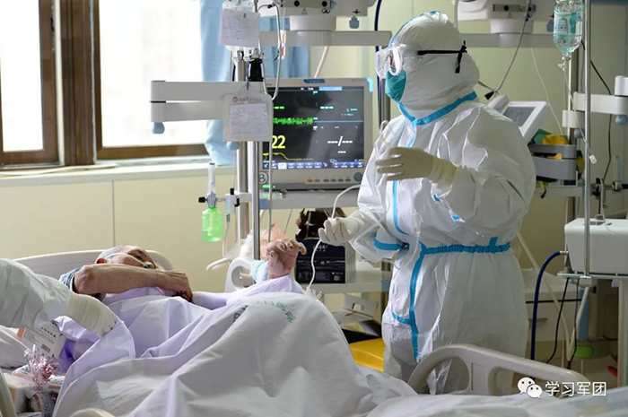 1月27日上午,海軍軍醫(yī)大學(xué)醫(yī)療隊(duì)醫(yī)護(hù)人員在漢口醫(yī)院重癥監(jiān)護(hù)室對新型冠狀病毒感染的肺炎患者進(jìn)行救治。醫(yī)護(hù)人員精心護(hù)理患者。解放軍報(bào)記者范顯海攝