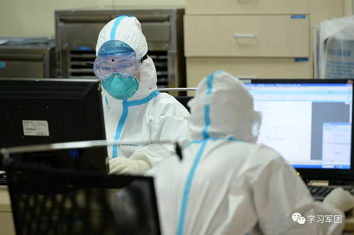 1月27日上午,海軍軍醫(yī)大學(xué)醫(yī)療隊(duì)醫(yī)護(hù)人員在漢口醫(yī)院重癥監(jiān)護(hù)室對新型冠狀病毒感染的肺炎患者進(jìn)行救治。醫(yī)護(hù)人員查看檢查結(jié)果,評估患者病情。解放軍報(bào)記者范顯海攝