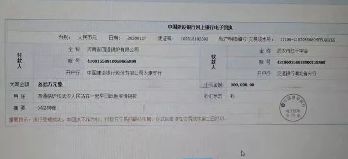 1月27日,太康縣首屆“最美退役軍人”、河南省四通鍋爐有限公司總經(jīng)理馮坤,在防控新型冠狀病毒感染肺炎的嚴(yán)峻斗爭(zhēng)中,主動(dòng)向武漢紅十字會(huì)捐款30萬元,用于支持疫情防控。