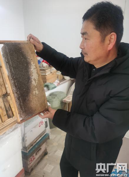 絕望、無望、希望?崔建存說他累了,但轉機出現了。崔建存告訴記者:“2015年的時候,村里就派了第一書記。到了8月份,柳樹上就有好多蜜蜂,當時他聽到蜜蜂飛的那個聲音就跟我說,‘要么你養(yǎng)蜜蜂吧。’他這樣對我一說,我說‘養(yǎng)吧’。其實我之前有過這個想法,但是沒有人幫助。他馬上就給我買回來兩本養(yǎng)蜜蜂的書,后來一個冬天我就看書。到了2016年春天三四月份的時候,(他)就開始張羅買蜜蜂的事。”