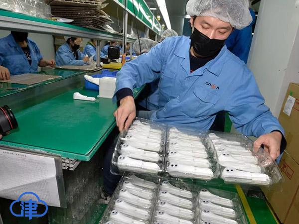 施向健大年初一就開(kāi)始安排復(fù)工的生產(chǎn)計(jì)劃、物料準(zhǔn)備等工作。正月初四,三分之一員工到崗,開(kāi)始恢復(fù)生產(chǎn)。“現(xiàn)在有250多名員工參加生產(chǎn),以本地員工為主。目前,我們只生產(chǎn)紅外線額溫計(jì),停止了其他所有商業(yè)需求,全力配合公共衛(wèi)生防疫需求。”施向健告訴記者。