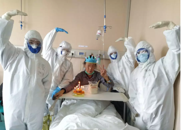 易老先生對(duì)我們說(shuō):“你們讓我度過(guò)了一個(gè)別開(kāi)生面,永生難忘的76歲壽誕,讓我重拾戰(zhàn)勝病毒的信心。雖然你們穿著防護(hù)服,戴著面罩,看不清你們的臉,但我相信你們都是最美的白衣天使。”