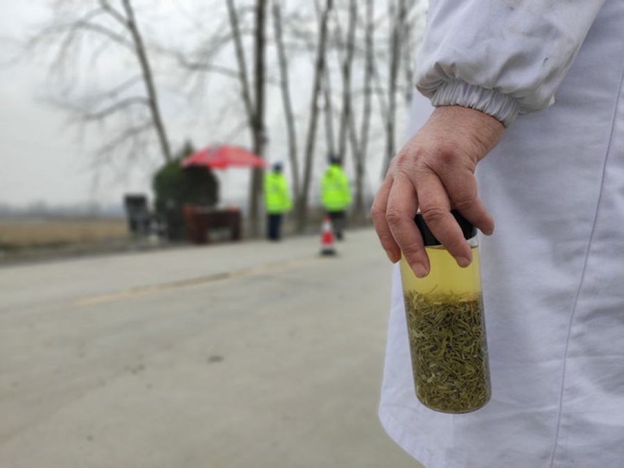 安徽金寨縣漆店村毗鄰湖北麻城,卡點就設(shè)置在省界碑旁。凌晨的大別山腹地,氣溫接近零下10度,紅外線測溫槍在室外無法正常工作。即便自己瑟瑟發(fā)抖,漆學(xué)濤還是把冰冷的測溫槍塞進懷中。 “焐一會才能保證準(zhǔn)確。”整整一夜下來,漆學(xué)濤的手已經(jīng)凍得麻木,甚至按不動測溫槍的按鍵。