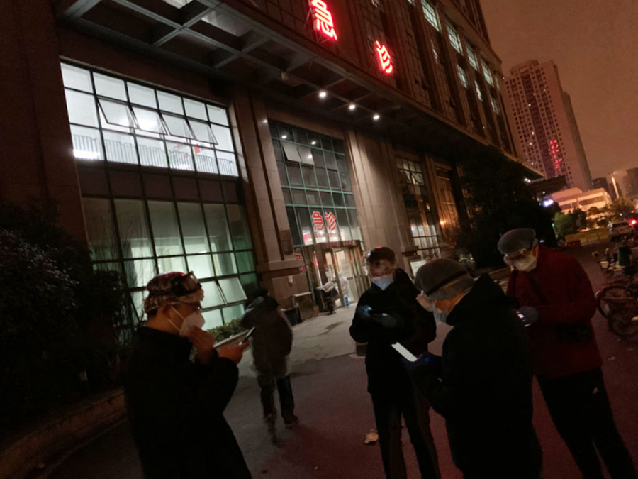 此時(shí)此地,也有太多眼淚和悲痛,還來(lái)不及釋放,就只能化作續(xù)步前行的力量。2月6日晚,李文亮醫(yī)生病危,全國(guó)網(wǎng)友悲慟,希望出現(xiàn)轉(zhuǎn)機(jī)。午夜時(shí)分我趕到他所在的醫(yī)院樓下,寒風(fēng)中,和一群同行站在門(mén)口,想不服輸?shù)氐纫粋€(gè)奇跡。直到凌晨3點(diǎn),沒(méi)有奇跡發(fā)生。因?yàn)樽叩么颐Γ鄙俜雷o(hù)用品,我放棄了貿(mào)然進(jìn)入隔離區(qū)拍攝的想法。在空無(wú)一人的醫(yī)院門(mén)口,只能深鞠一躬后離去。