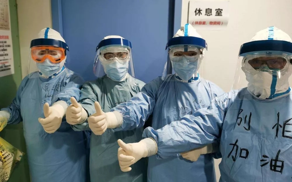 在防護服上寫下了“武漢加油”