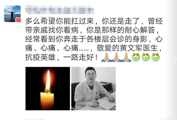 除孝感市中心醫院的黃文軍醫生外,昨天還有兩名醫生因感染新冠肺炎不幸殉職。