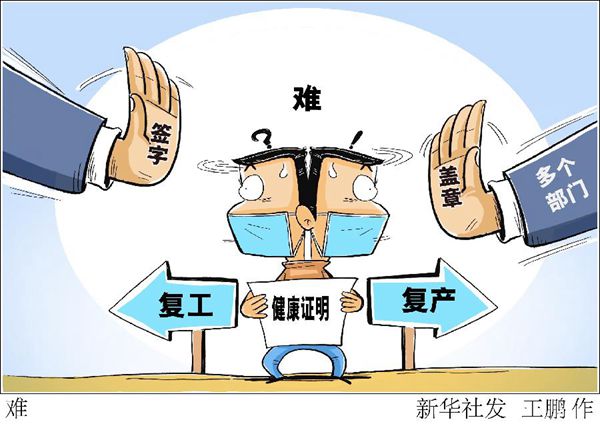 根據中央部署,全國不少地方在嚴抓疫情防控的基礎上,正逐步開展復工復產?!靶氯A視點”記者接到一些群眾和企業反映,返程上班和恢復生產,在辦理相關證明過程中遭遇不少形式主義的煩惱。