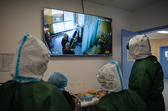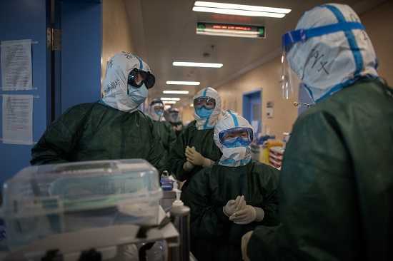 2月20日,同濟(jì)醫(yī)院光谷院區(qū),即將進(jìn)ICU的“敢死隊(duì)”在穿戴防護(hù)裝備。所有人都要經(jīng)過院感護(hù)士的檢查,才能進(jìn)入隔離區(qū)域。