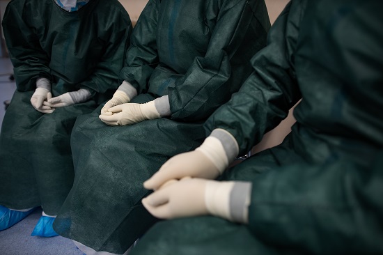 等待進(jìn)倉,3個(gè)醫(yī)生在門外靜靜休息,偶爾會(huì)討論接下來的工作。