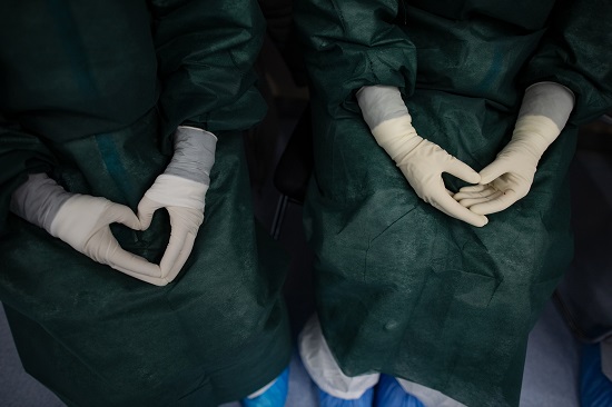 有醫(yī)生的手勢是心型,仿佛是在祈禱和祝福。