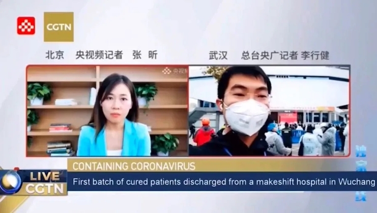 2月11日,中央廣播電視總臺中國之聲特別報(bào)道部記者李行健在武昌方艙醫(yī)院前與央視頻連線,并通過CGTN等平臺同步直播。
