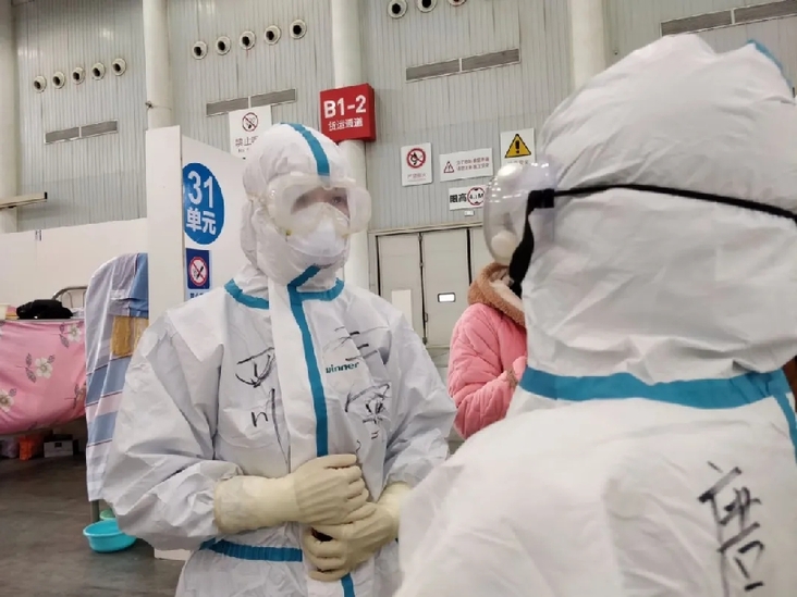 2月21日,我來到洪山體育館。不久前,我在這里聽過演唱會,看過男子籃球比賽。沒想到再見到它,已經(jīng)變成了收治新冠肺炎患者的方艙醫(yī)院。穿上隔離服,經(jīng)過嚴(yán)密的防護(hù)措施,我再次走進(jìn)了它。