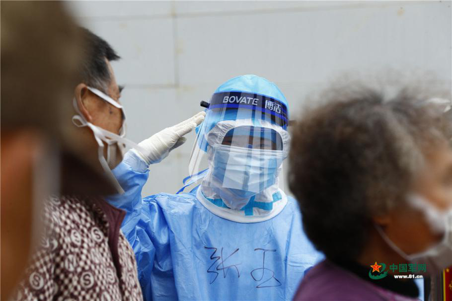 醫(yī)護人員向表達感謝的患者回敬軍禮。王皓宇 攝