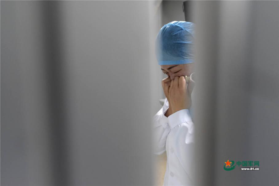 吳亞玲與家人通完電話后忍不住落淚。解放軍報記者范顯海 攝