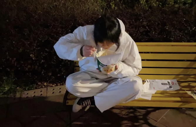 有天凌晨加班加點搶建完ICU病區,宿舍沒通電也沒開水,我們從門衛那里接了電,借了開水壺,每人一桶泡面,又是宵夜又是早餐。