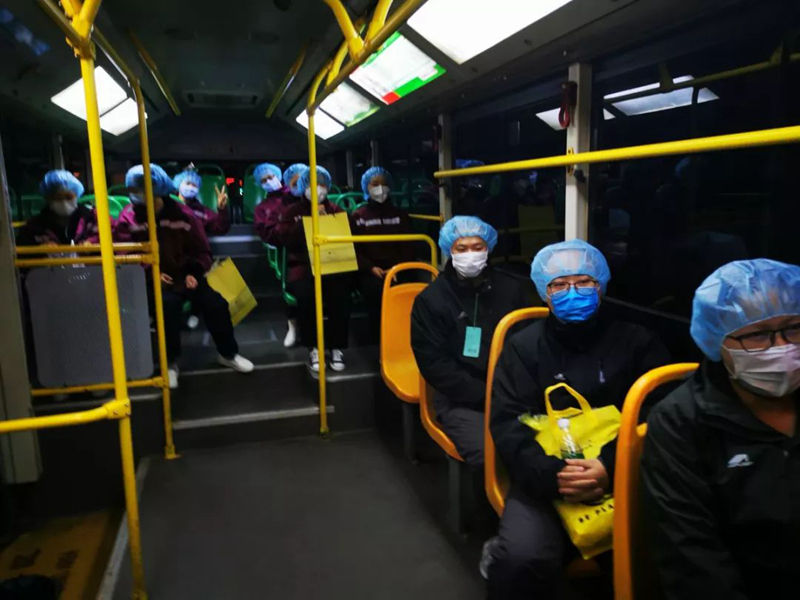 從重慶到武漢的第一天,凌晨4點去醫院上班。大家戴著口罩和防護帽,沒有一個人講話,氛圍凝重。